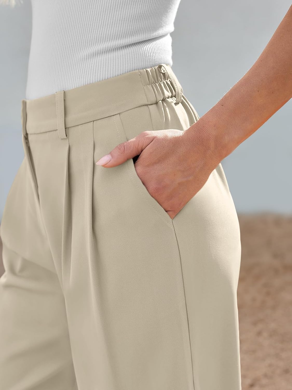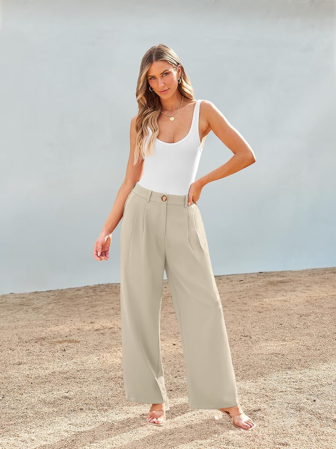 AUTOMET Women Wide Leg Dress Pants High Waisted Loose Fit Business Casual Work Trousers with Pockets 2024Create a new description for this product from the title with 500 characters