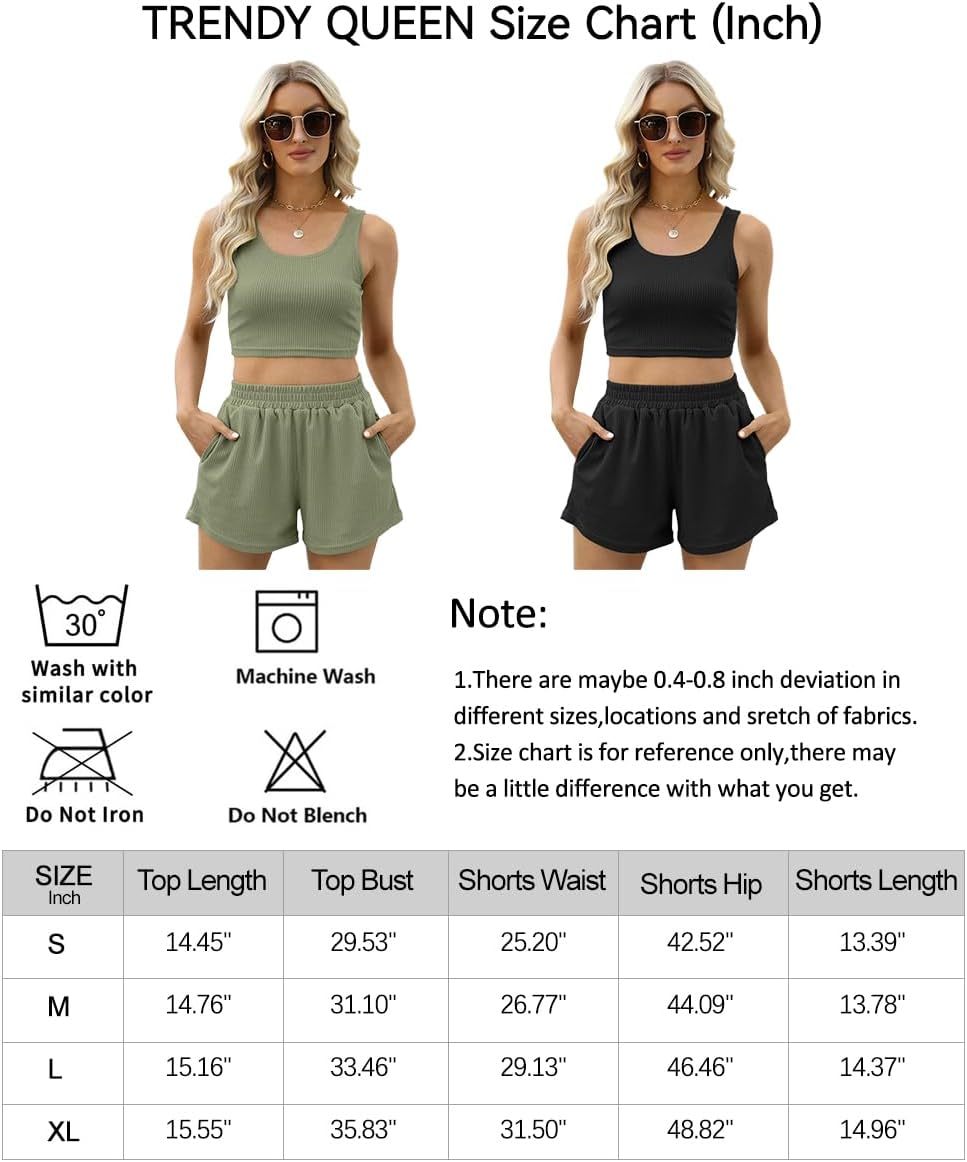 Trendy Queen Two Piece Summer Outfits Women Shorts Sets 2 Piece Sleeveless Matching Lounge Crop Top and High Waisted ShortsCreate a new description for this product from the title with 500 characters