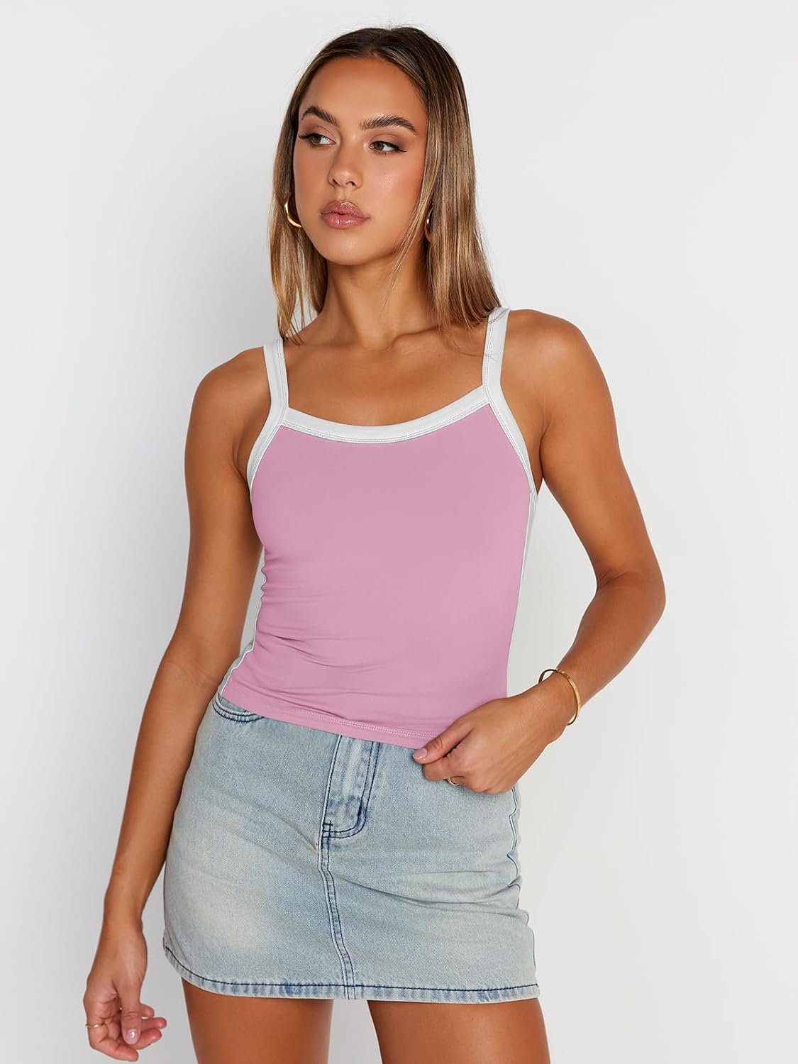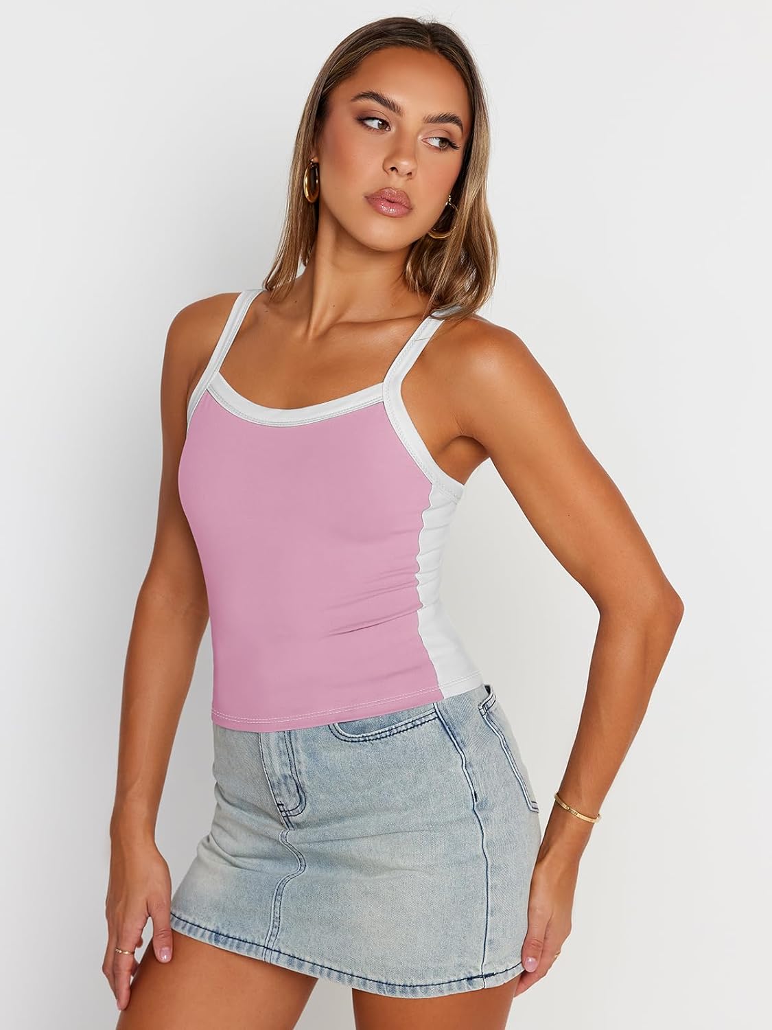 Trendy Queen Women’s Camisole Tank Tops Sleeveless Racerback Cami Slim Fitted Tops Casual Summer 2024Create a new description for this product from the title with 500 characters