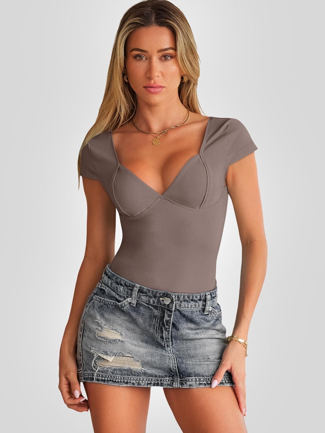 Trendy Queen Womens Deep V-Neck Backless Tops Short Sleeve Slim Fit T-Shirts Basic Y2K Tops Bustier Corset Cami 2024Create a new description for this product from the title with 500 characters